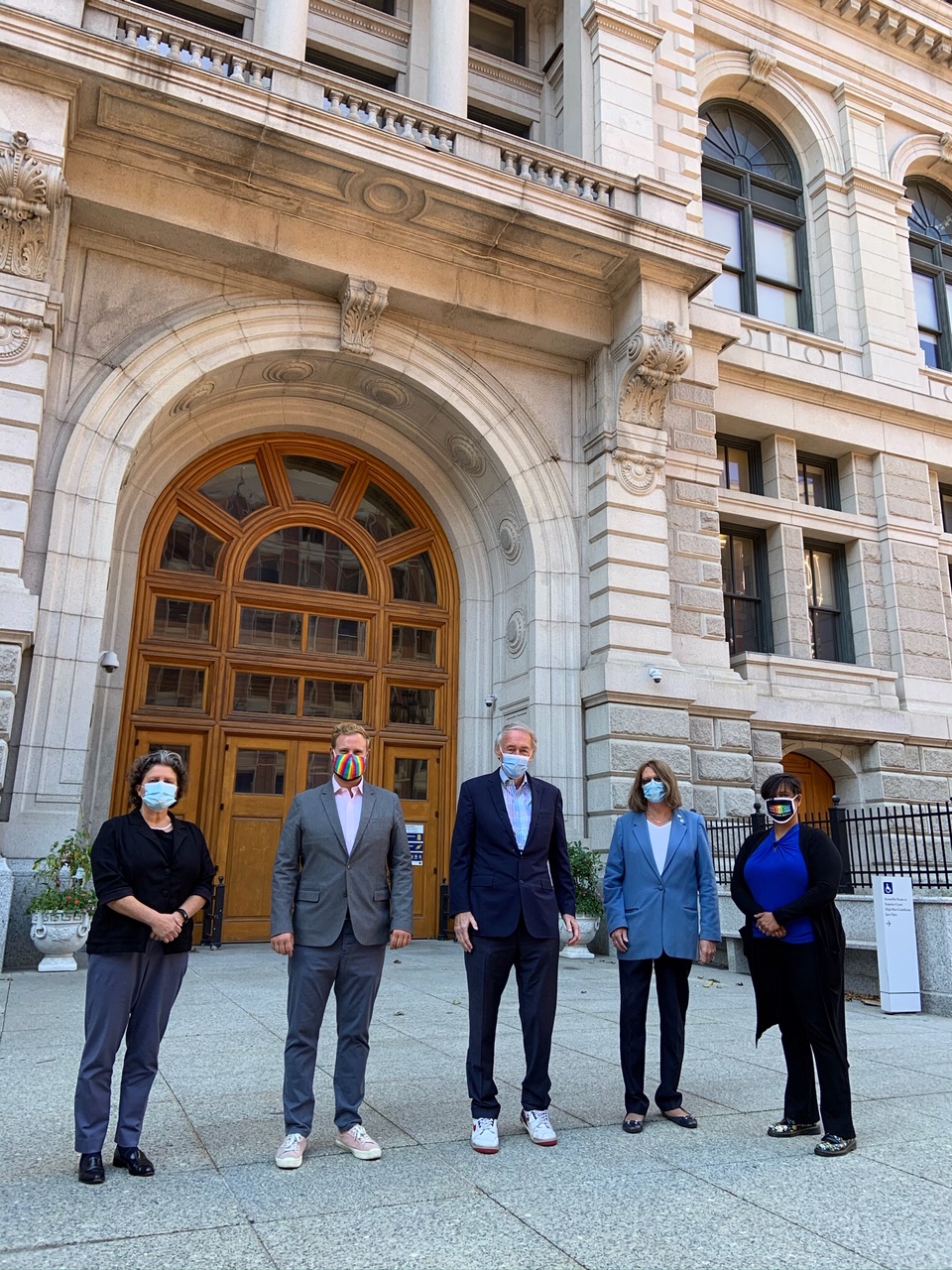L-R: Fenway Health CEO Ellen LaPointe, State Sen. Julian Cyr, Sen. Ed Markey, Newton City Councilor Holly Ryan, MassEquality Exec. Director Tanya Neslusan On October