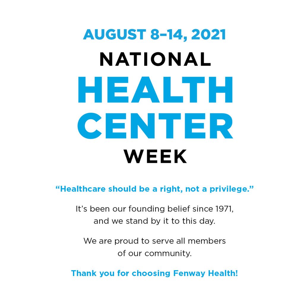 August 8th through August 14th marks National Health Center Week 2021, a very special week that we observe each year here at Fenway Health. Started by the National Association of Community Health Centers (NACHC), this week is a time to raise awareness about the mission and accomplishments of America’s health centers. For over 50 years, Community Health Centers (CHCs) have become pillars of public health, providing care and services to people from all walks of life. Today, CHCs are working harder than ever to keep communities healthy across the country in the midst of the COVID-19 pandemic.