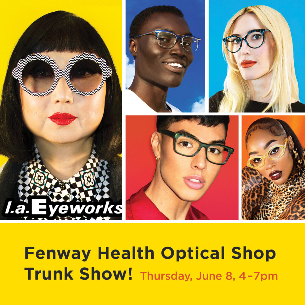 You’re invited to the Fenway Health Optical Shop l.a. Eyeworks Trunk Show! Join us at our Optical Shop, located on the first floor of 1340 Boylston Street location, on Thursday, June 8 from 4-7 PM for amazing deals on some of the hottest designer eyewear. Snacks and beverages will be provided.