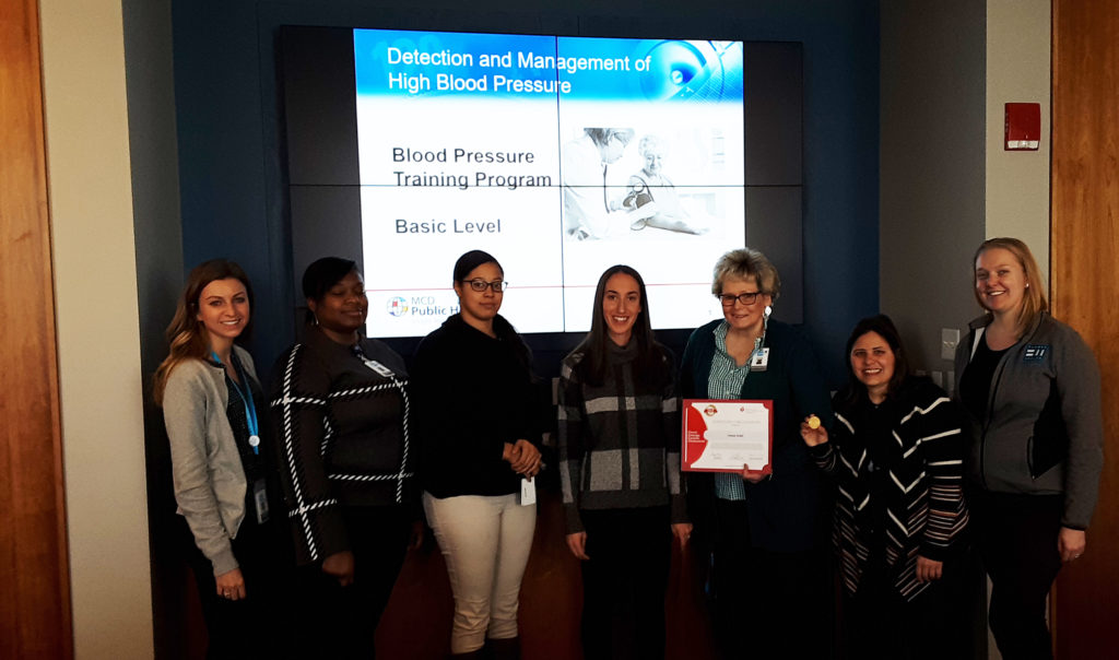 Fenway’s Nursing Leadership team accepting the awards from Stephanie Barba, the Community Impact Director of the American Heart Association.