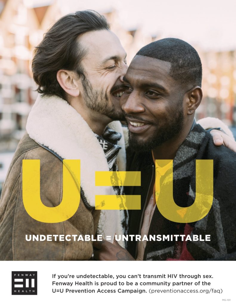 Fenway Health is proud to announce that we have joined the Prevention Access Campaign‘s Undetectable = Untransmittable (U=U) initiative as a Community Partner. U=U is a growing global community of HIV advocates, activists, researchers, and over 870 Community Partners from nearly 100 countries uniting to clarify and disseminate the revolutionary but largely unknown fact that people living with HIV on effective treatment do not sexually transmit HIV.