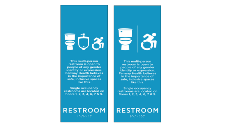 As part of Fenway Health’s commitment to creating inclusive and welcoming spaces for everyone who walks through our doors, we have installed new restroom signage on the multi-person restrooms at 1340 Boylston Street.