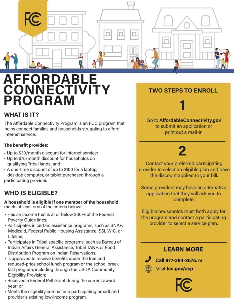 With more people working remotely or receiving telehealth services now than ever before, reliable home internet is a necessity. For many households, however, internet services and connected devices are putting a strain on their budgets. Fortunately, assistance is now available through the Affordable Connectivity Program (ACP).