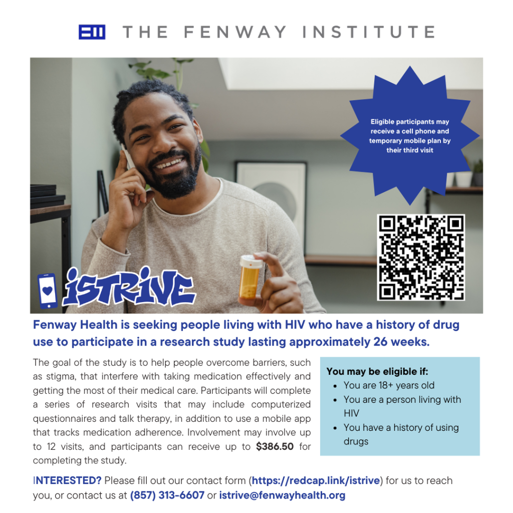 Seeking people living with HIV who have a history of using drugs to participate in the research study, iSTRIVE